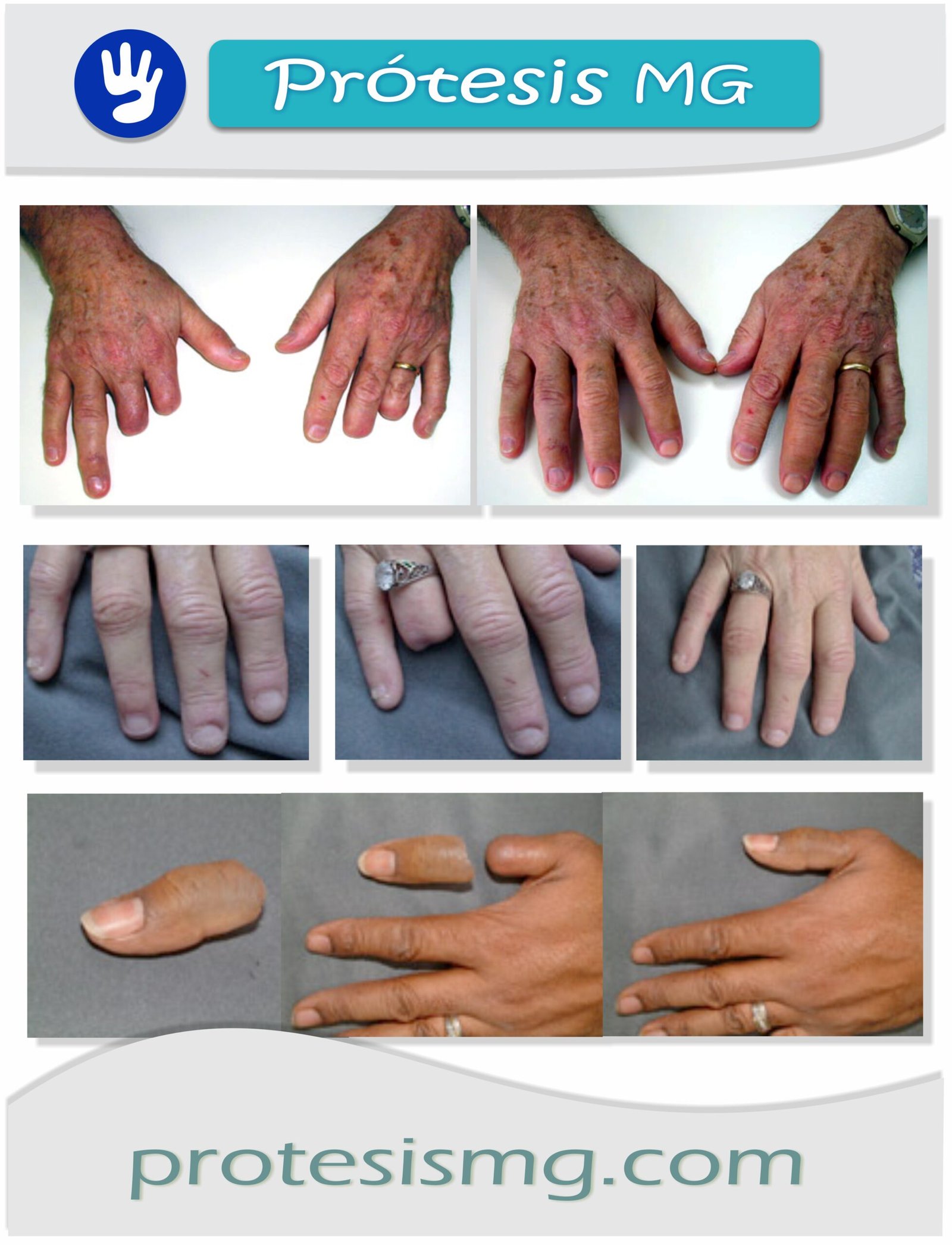 Los usuarios, también encuentran soluciones en forma de Prótesis para los dedos de la mano, creadas para camuflar quemaduras, deformidades o malformaciones. Dispositivos especiales que en muchos casos también pueden evitar el dolor y/o corregir variedades de secuelas asociadas.